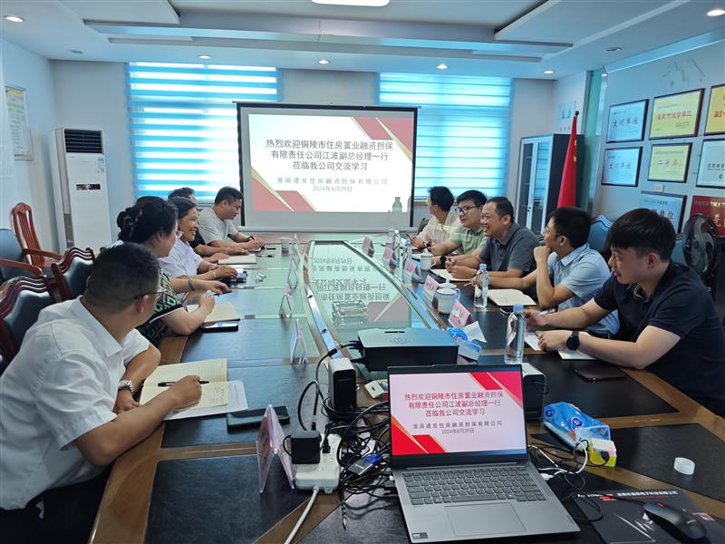 為進(jìn)一步加強(qiáng)行業(yè)間交流,促進(jìn)業(yè)務(wù)發(fā)展,8月29日下午,銅陵市住房置業(yè)融資擔(dān)保有限責(zé)任公司副總經(jīng)理江波一行五人到淮南建發(fā)住房融資擔(dān)保有限公司開展業(yè)務(wù)交流活動(dòng),雙方就非融資擔(dān)保業(yè)務(wù)、保后風(fēng)險(xiǎn)防控和公司信息化等方面進(jìn)行了深入交流。